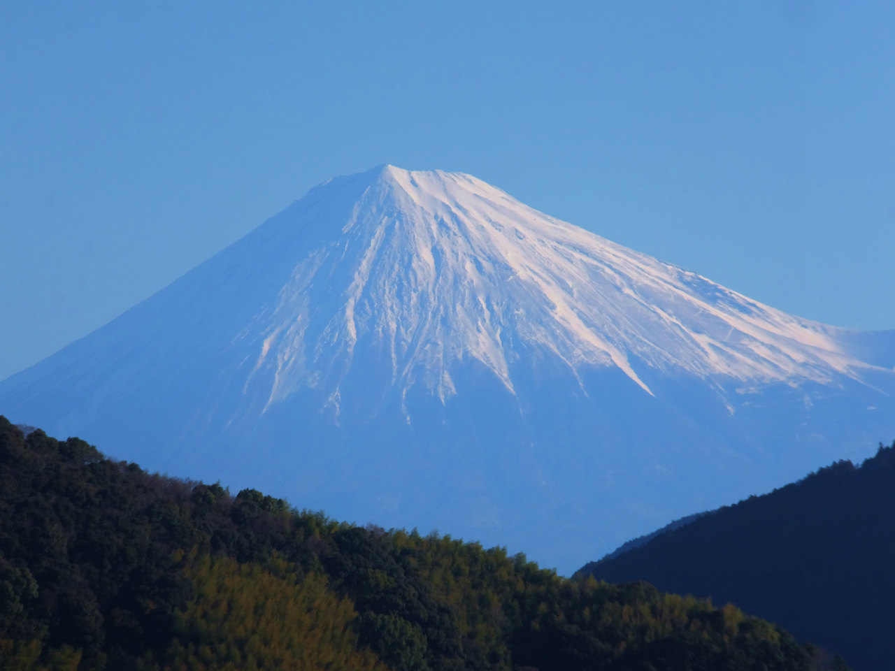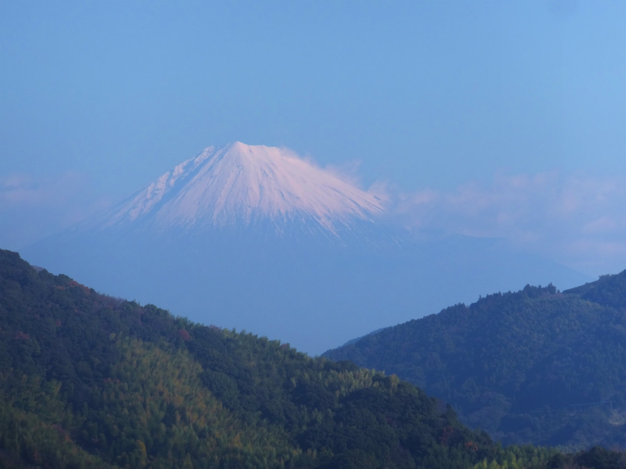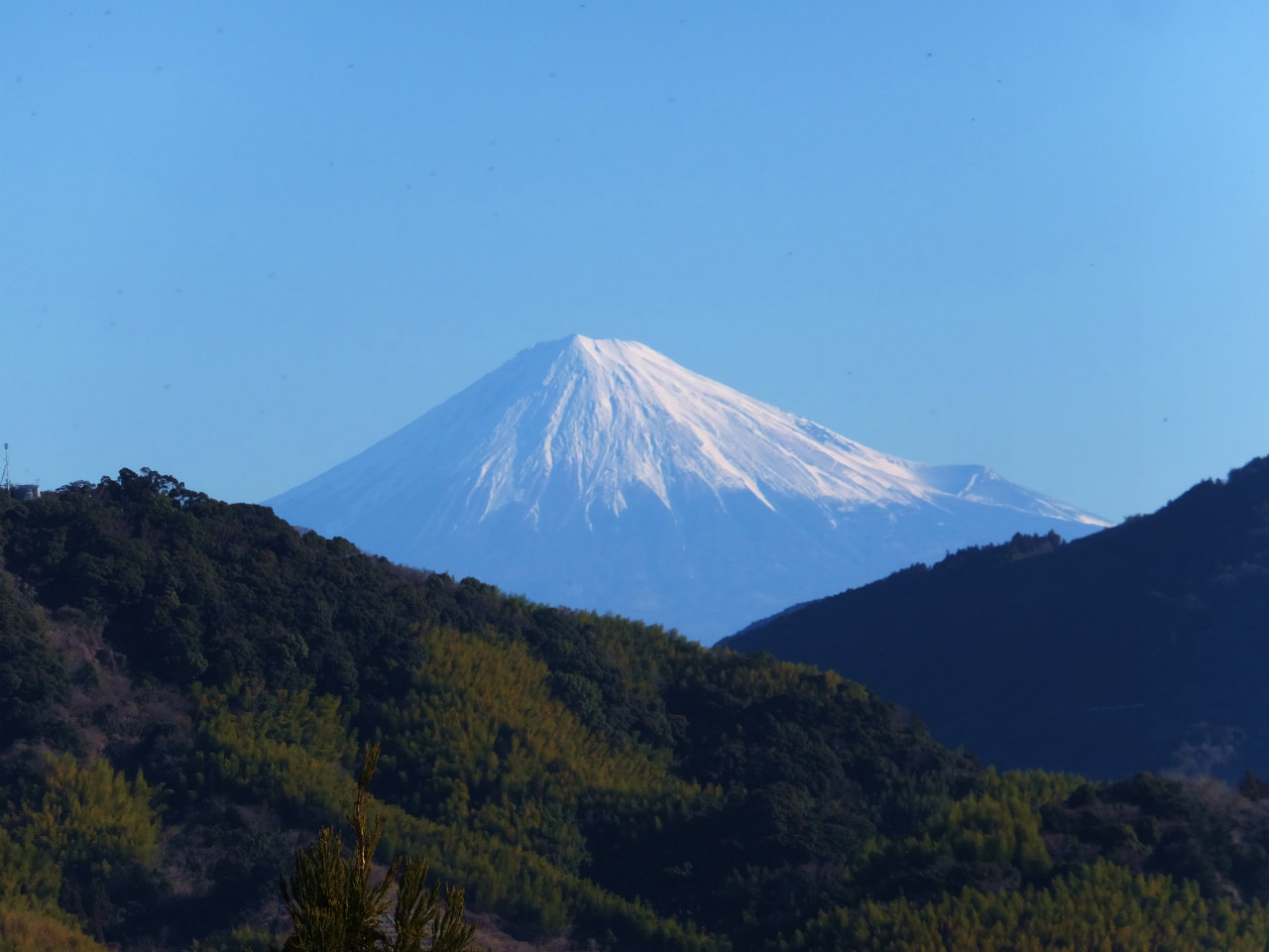 今日の富士山は風もなく、きれいに見れているが昨日はすごかった。風で雪が舞いあがっているのが藤枝からも確認できた。