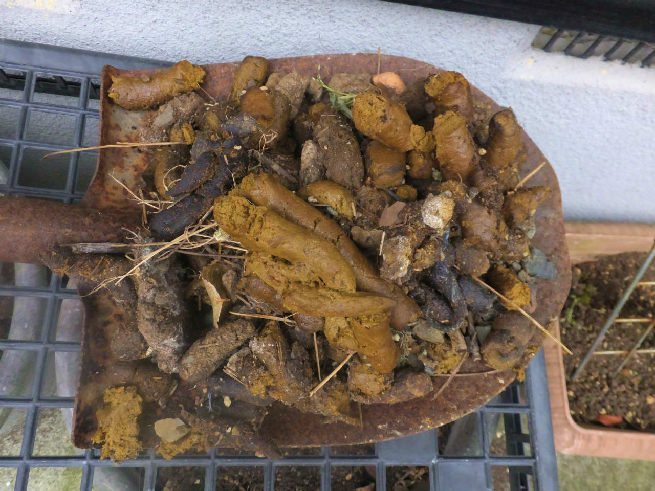 今までは、家のプランターや、家の周りの土や砂利の部分にされることが多かったが、最近はコンクリートの上にもフンがされている。