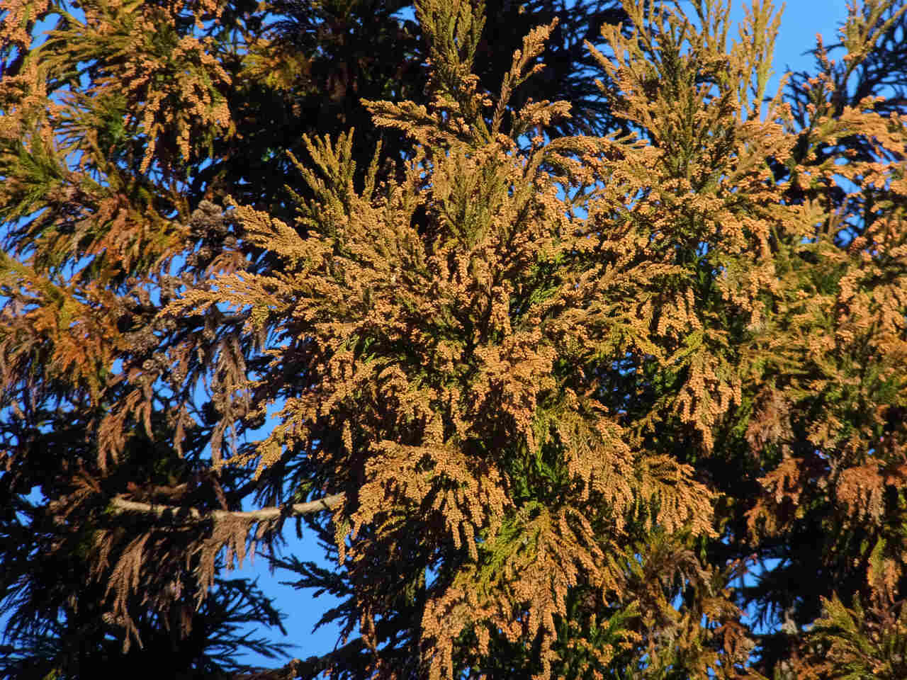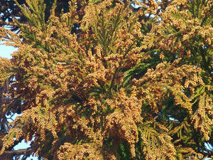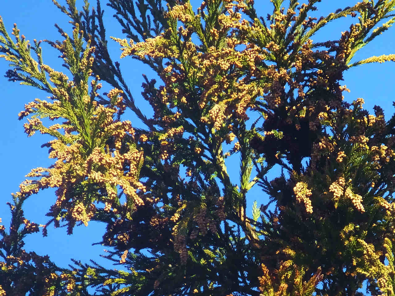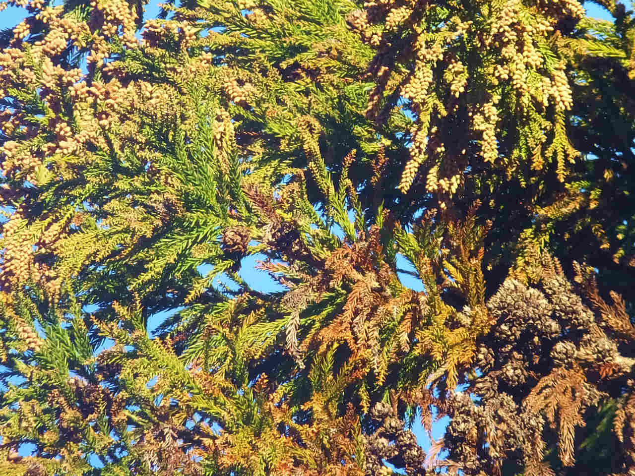 たまたま風がなかったが、風が吹けば白い花粉が見えるぐらい飛散しそうである。