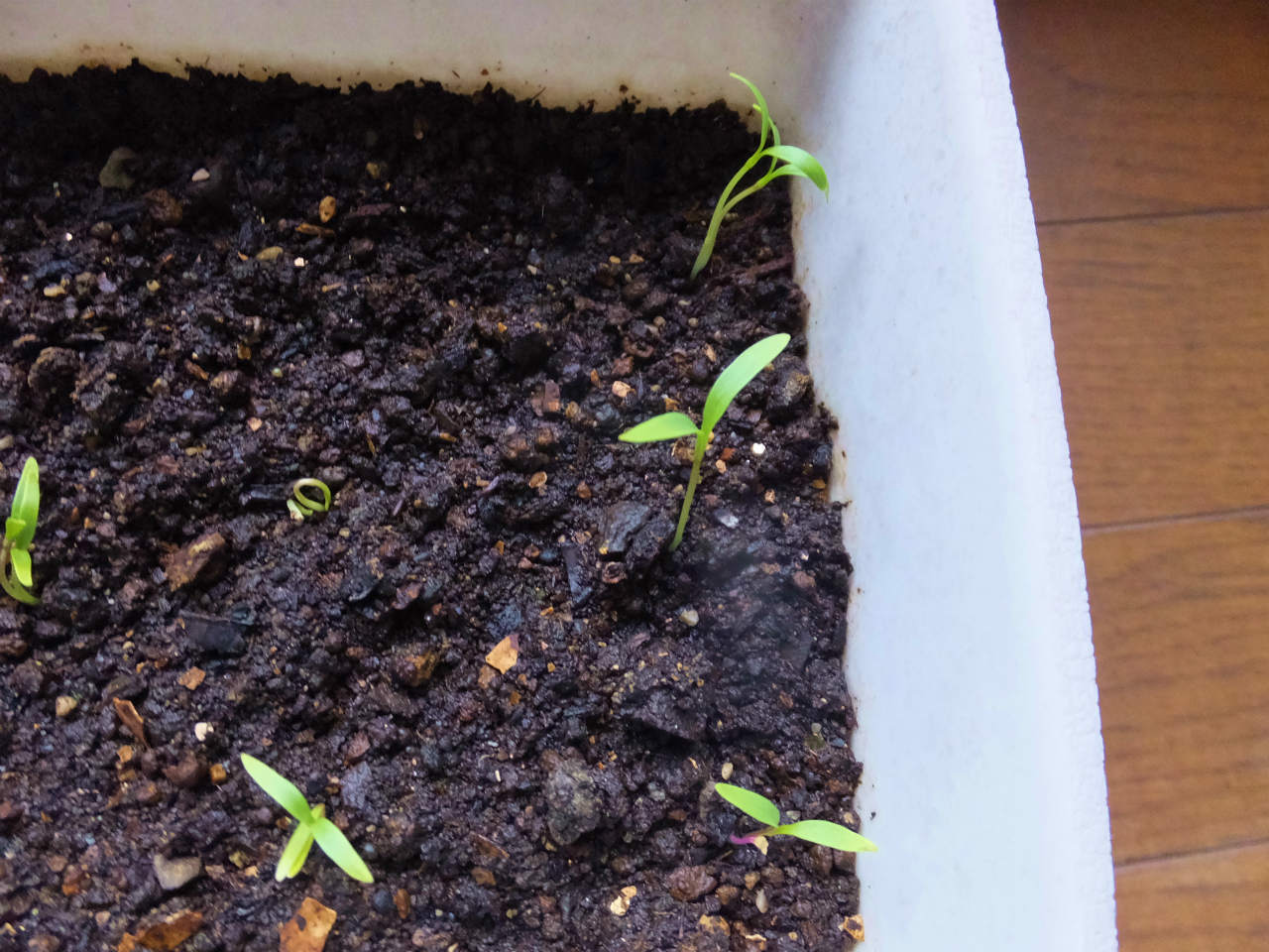それぞれ平成25年から28年まで栽培で収穫した種をそれぞれ1粒づつまいてみた。