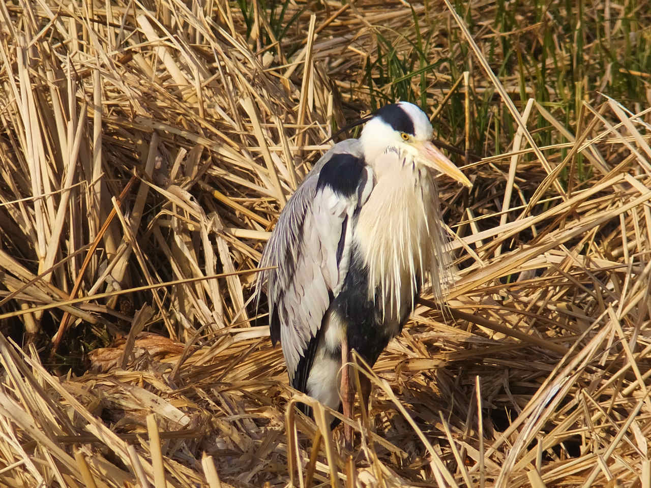 頭の後ろに伸びた白い飾り羽がオシャレである。