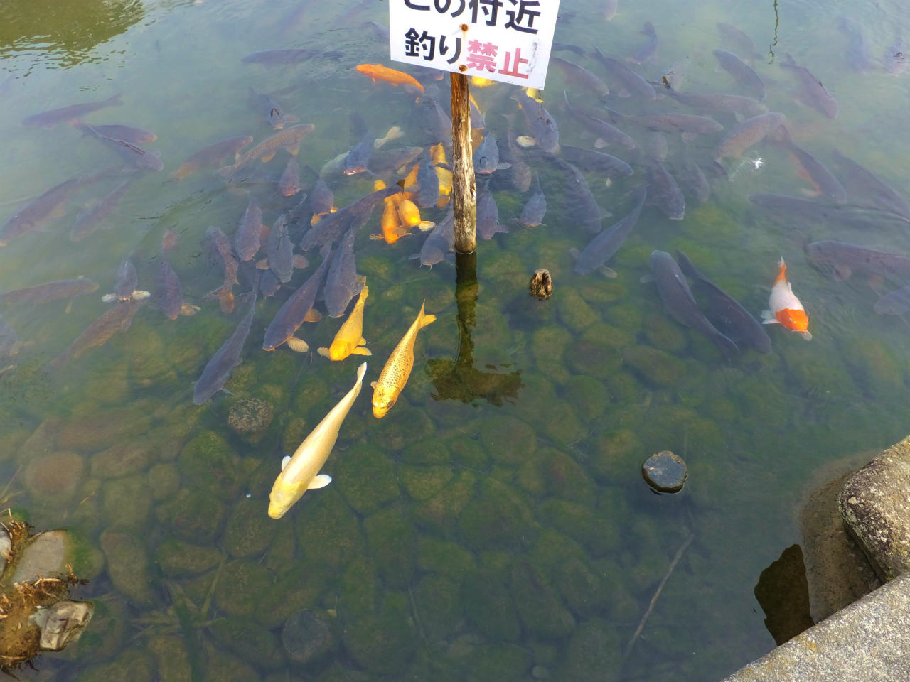 池の中に目をやると鯉がたくさん。
