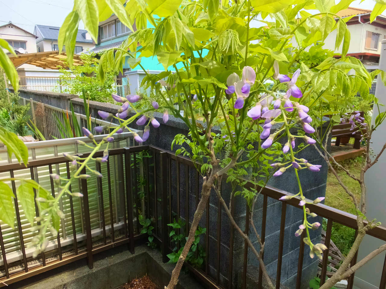 そのうち2本は、2009年に蓮華寺池公園で拾ってきた種をまいて育てた実生のフジの花である。