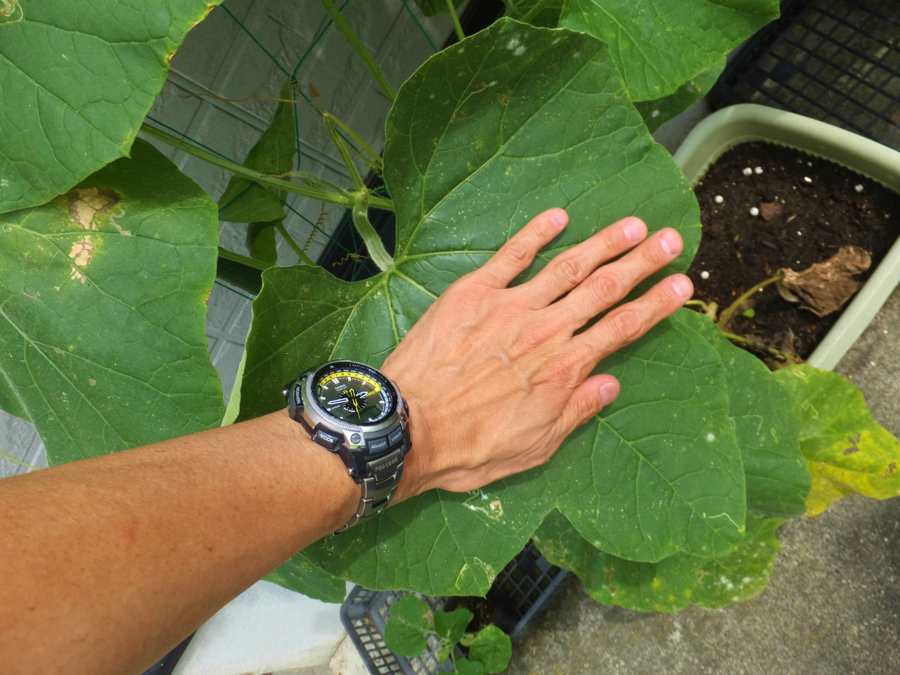 昨年は、9月9日にウリキンウワバの幼虫に葉を食べられてしまったため、栽培を中止した。