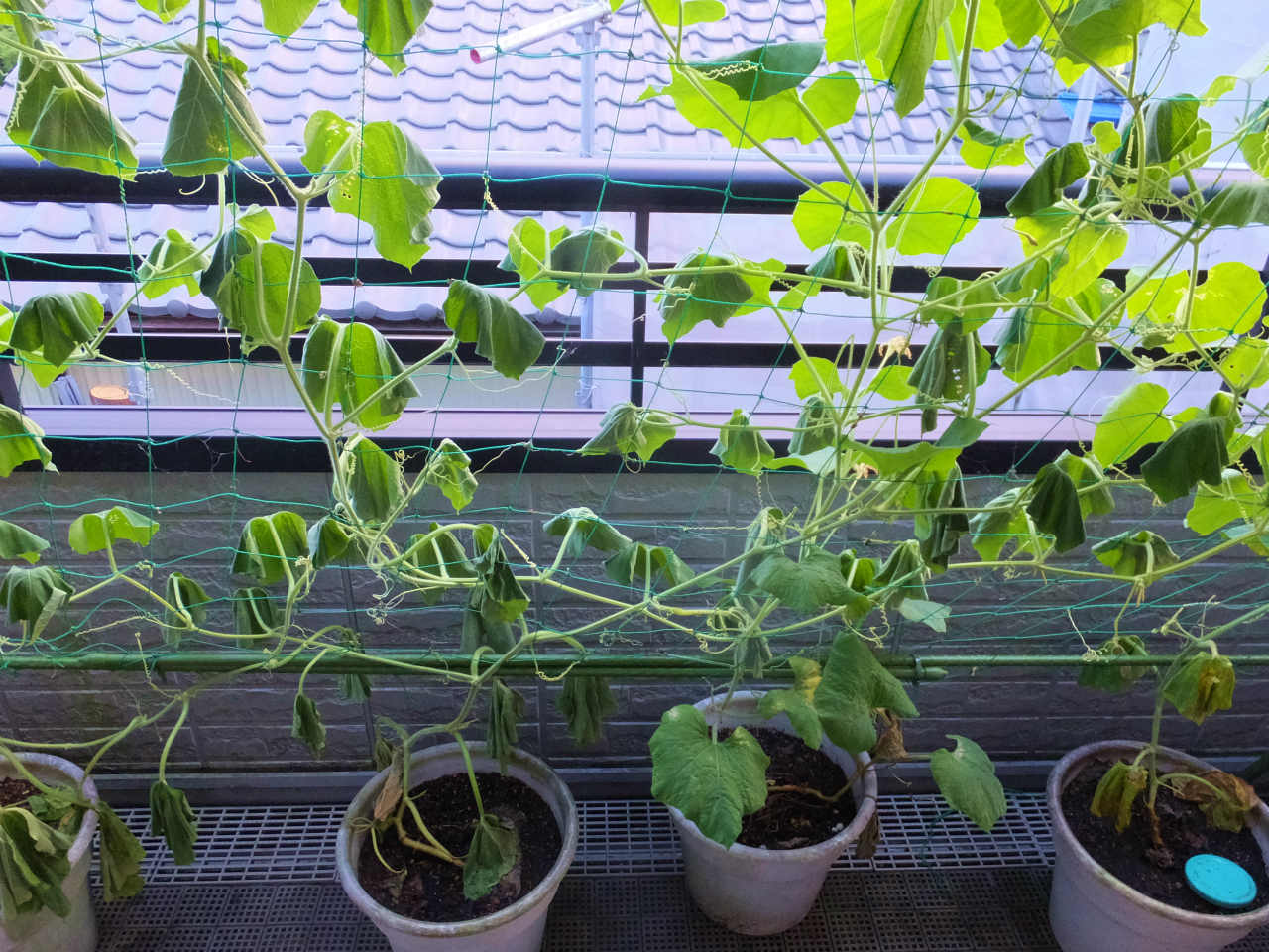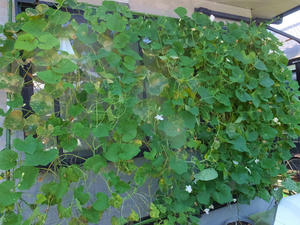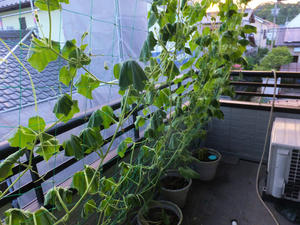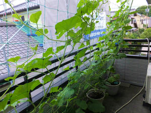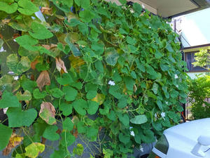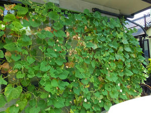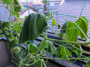 窓がある位置の葉が少なくなってしまって、グリーンカーテンの役割が薄れてきた。