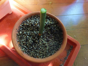 下の部分は、まったく葉がない状態で、サボテン用の土に挿し木してみた。