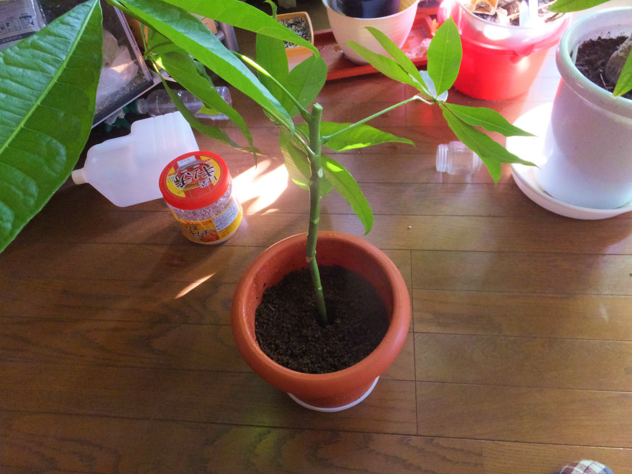 パキラの挿し木2016/07/31我が家の室内には、観葉植物のパキラがあります。