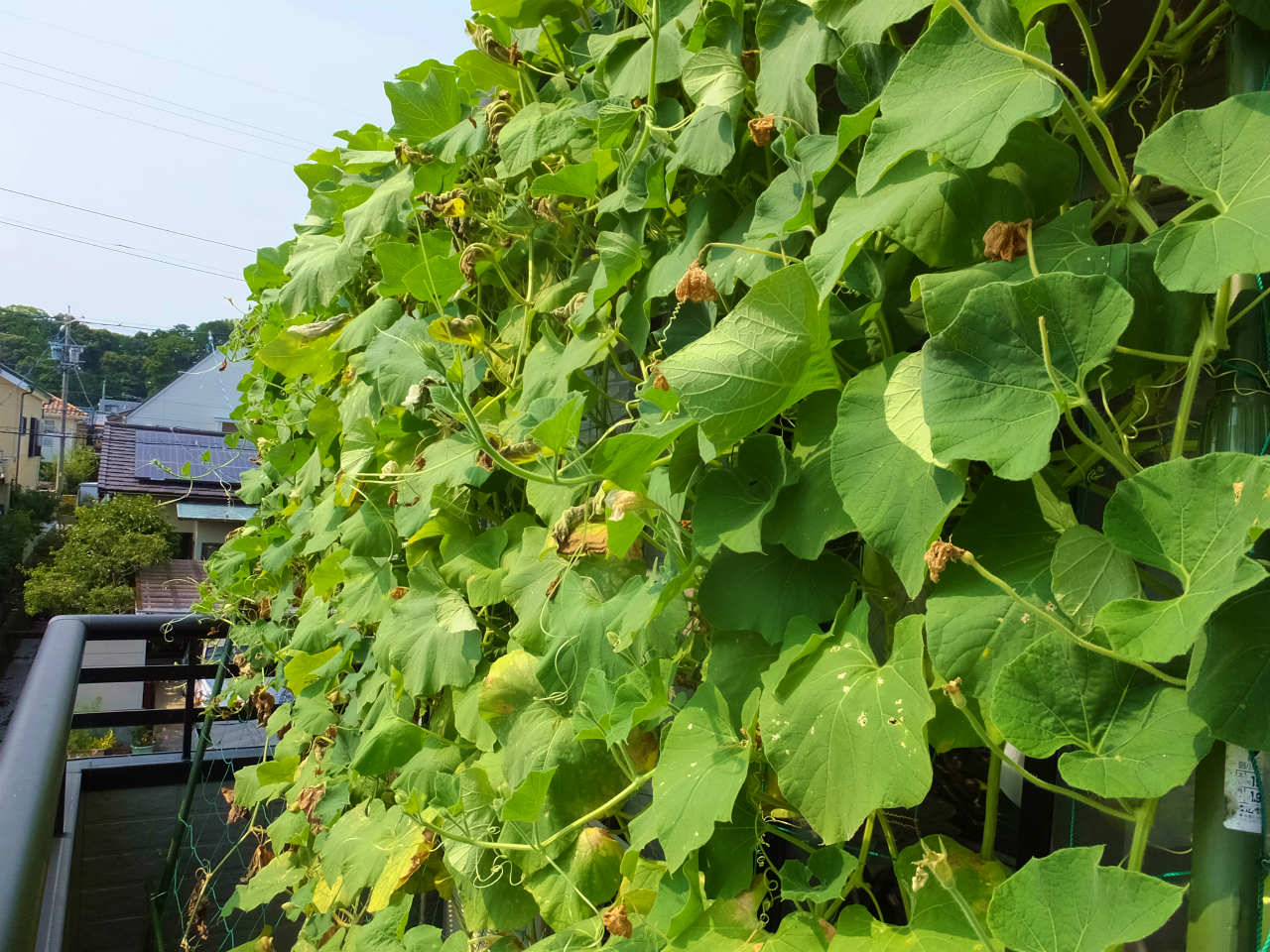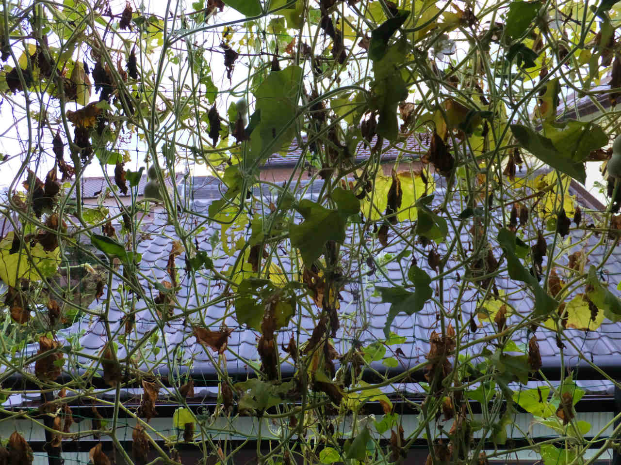 2階のグリーンカーテンは、枯れる葉も多くなった。