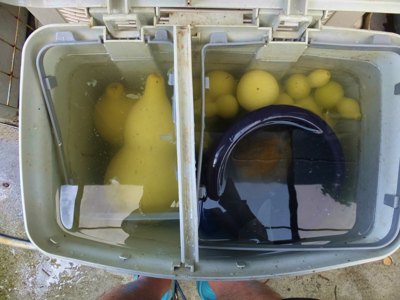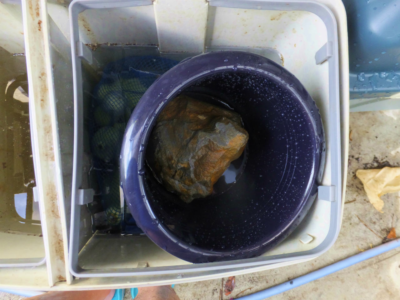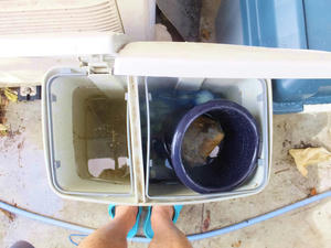 ヒョウタンの中にも水が入って、重石をしなくても水中に沈むようななった。